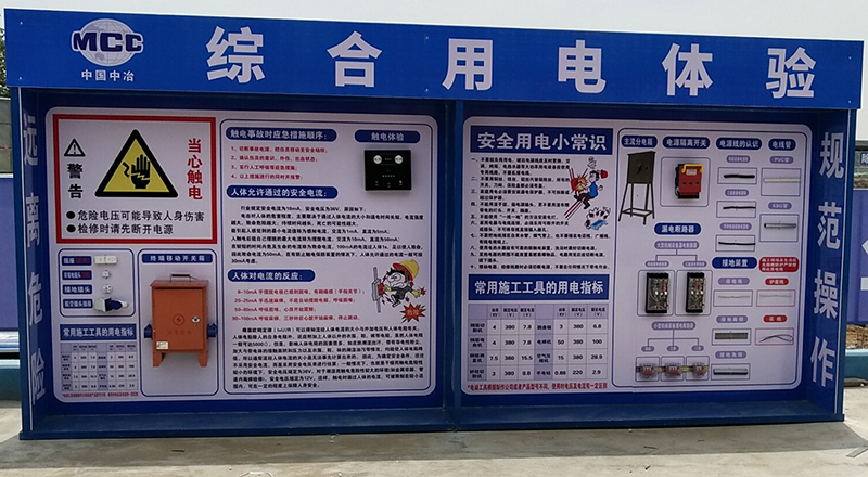1、綜合用電體驗尺寸一般為4800*800*2300mm,含各種用電設備及模擬觸電儀器,可根據現場實際尺寸調節。