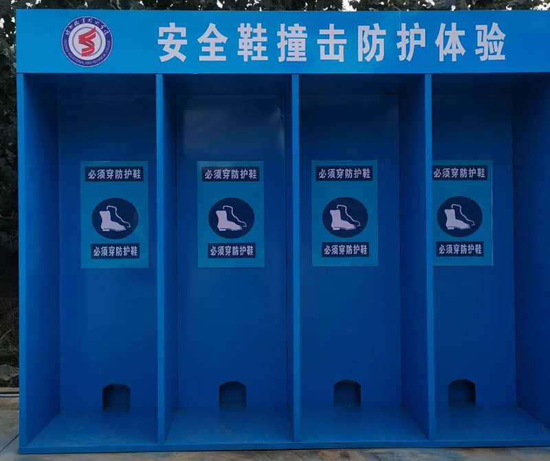 2、體驗時正確穿戴安全鞋后直立在指定位置,開啟遙控或手動按鈕,球桿通過滑道砸擊安全鞋鞋頭部位,感受在搬運重物時安全鞋起到的安全保護作用,加深對穿戴安全鞋的重要性。